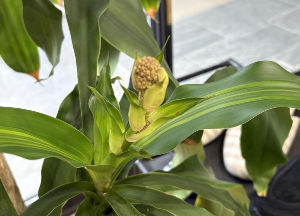 実はドラセナの開花は非常に珍しく、数年〜数十年に一度と言われていて、